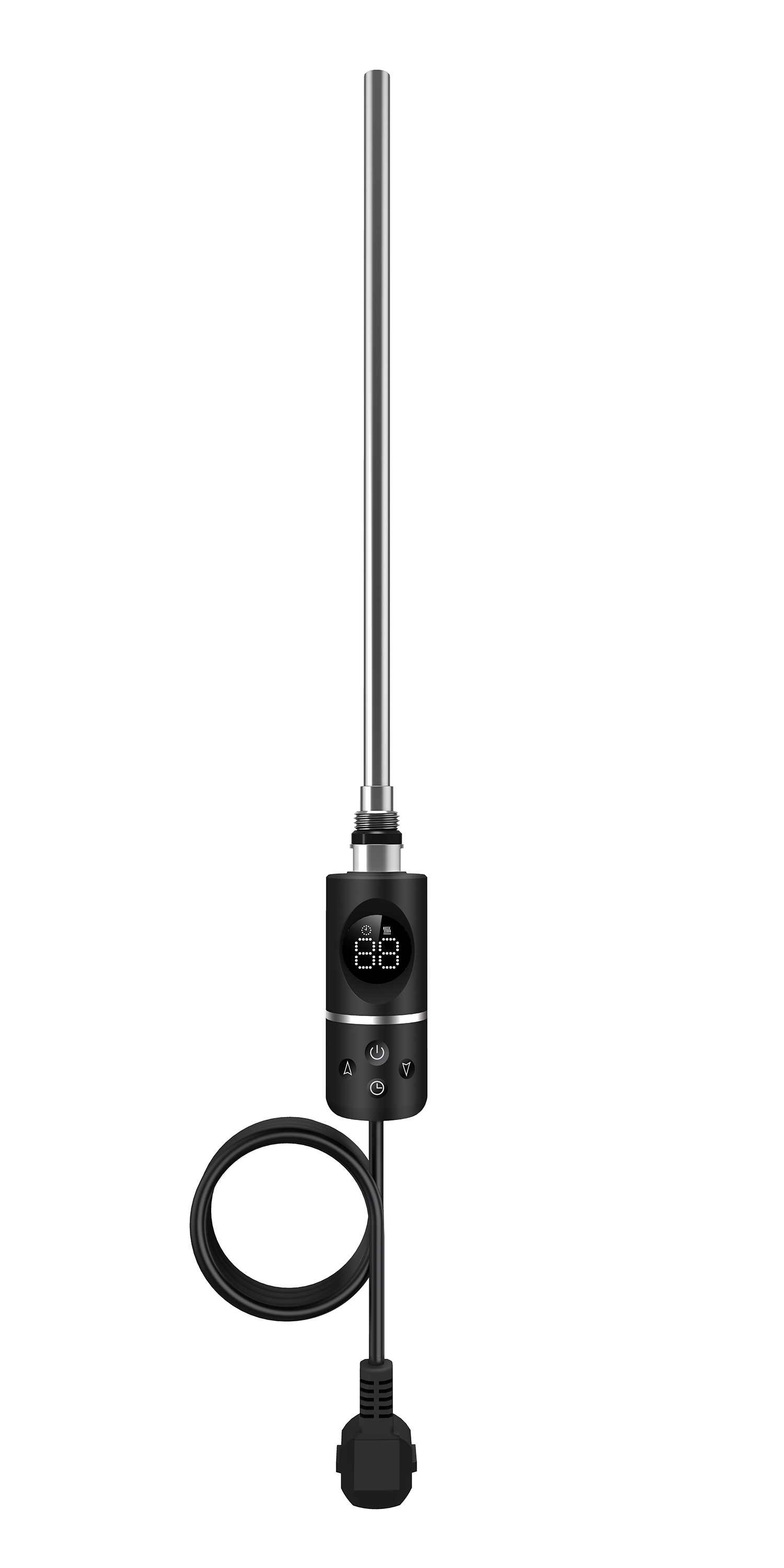 Cikkszám: 20.2000 Black. Termékjellemzők: Teljesítmény: 700 Watt. Áramellátás: 220 V. Időzítő időtartam: 2-4-6-8 óra. Hőfok beállítás: 40°C - 65°C. LCD kijelző. A Central Heat 20.2000 fűtőpatronja letisztult formavilággal rendelkezik, mely tökéletesen illeszkedik minden törölközőszárítós radiátorhoz. Elegáns tervezésének köszönhetően egyedi megjelenést kölcsönöz a fürdőszobákban, kiegészítve a radiátorokat. A Central Heat fűtőpatronja egy olyan speciális fűtőelem, amelyet kifejezetten törölközőszárítós radiátorokra terveztek. Ez a fűtőpatron lehetővé teszi, hogy a fűtőtestek elektromos árammal is működjenek (felmelegítsék a radiátort), ennek köszönhetően pedig biztosítják a radiátorban lévő víz felmelegítését. Ez különösen akkor lehet hasznos, amikor esetleg a központi fűtés nem üzemel, de a törölközők melegítésére vagy szárítására szükség van, vagy szeretnénk kellemes meleget biztosítani a fürdőnkben.