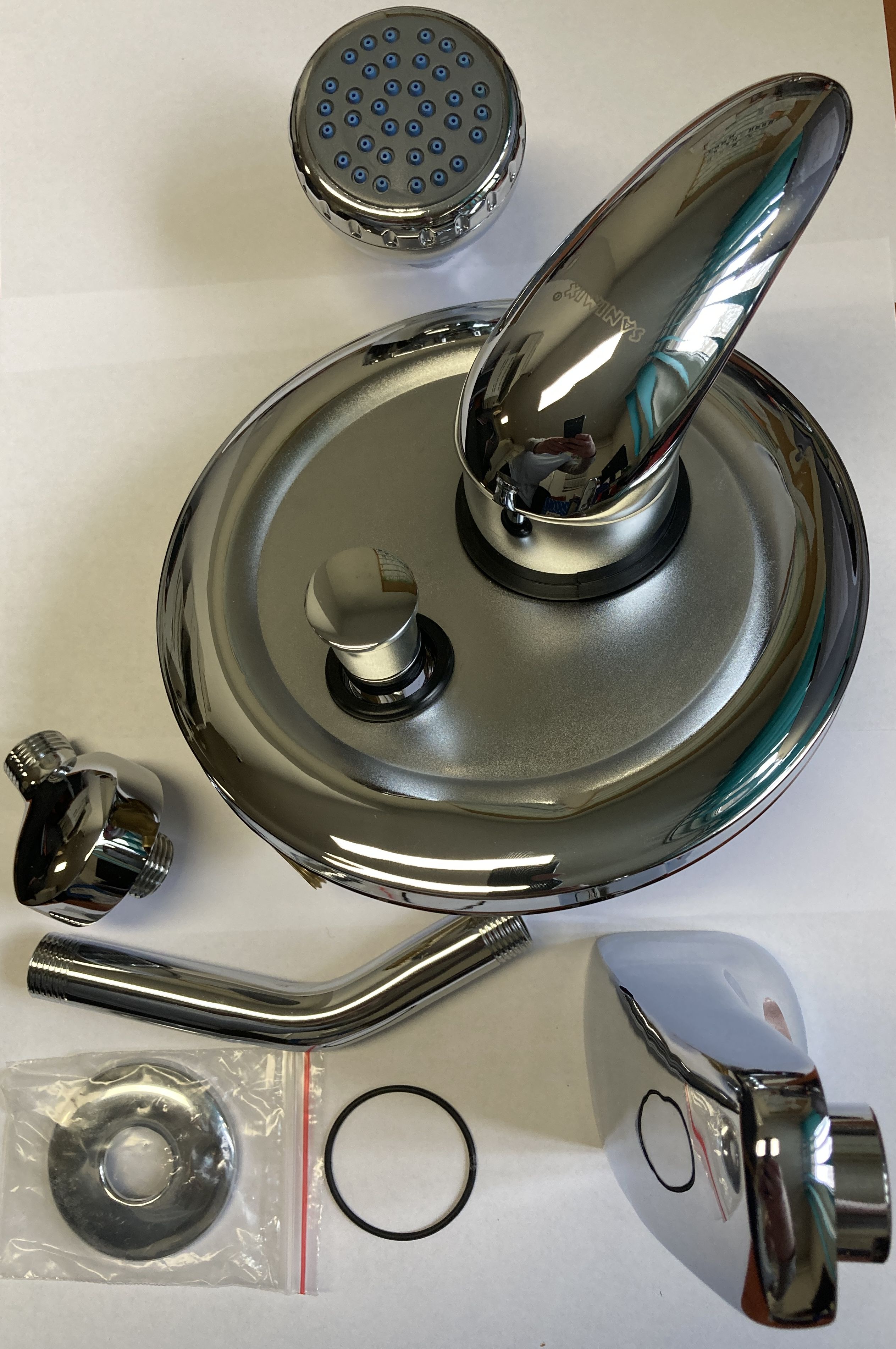 A komplett szett tartalma: - felső esőztető zuhany - kétállású beépített vizes vezérlő - kádtöltő - kézi zuhany csatlakozó - takarórózsa - tömítések Műszaki adatok: Maximális üzemi hőmérséklet: 70C Kerámiabetétes elzáróegység, 35mm átmérővel. 8 mikronos krómozással, fém karral. Vízátersztő képesség 21 l/perc fölött.