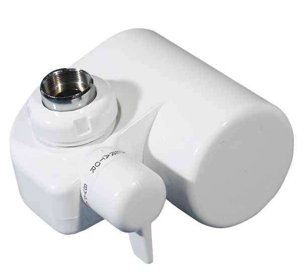 vízcsapra szerelhető aktív szénszűrővel ellátott víztisztító Eltávolítja a klór 75%-át , az íz, szagrontó és szerves anyagokat. A szűrő élettartama: 2-3 hónap, vagy 2000 liter. Alkalmas ivóvíz és főzési víz előállítására Teljesítmény: 1-9 liter/ perc / 2-8 bar nyomáson Egyszerűen felszerelhető, a perlátor helyére. Az élettartam függ a víz szennyezettségétől. Méret: 66 x 102 x 113 mm. Betét : FC2001