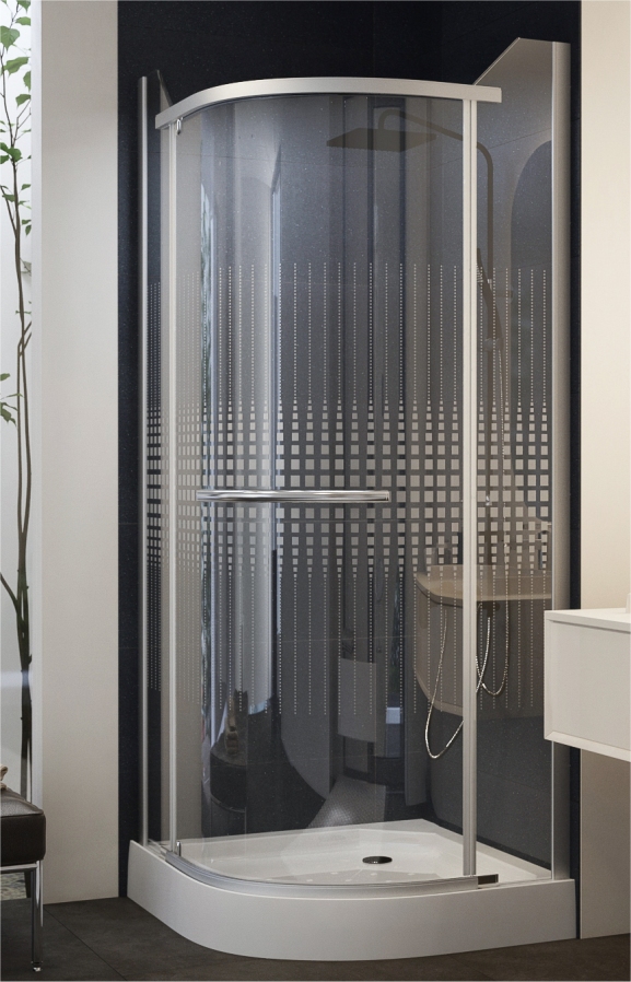 90x90x195 cm (beépítési méret: 87-89 cm) 5mm vastag, négyzet mintás, edzett biztonsági üveg Matt ezüst ívek és profilok Mágneses ajtózár Jobb-Bal ajtónyítási lehetőség Króm törölköző tartós fogantyú Fém zsanérok