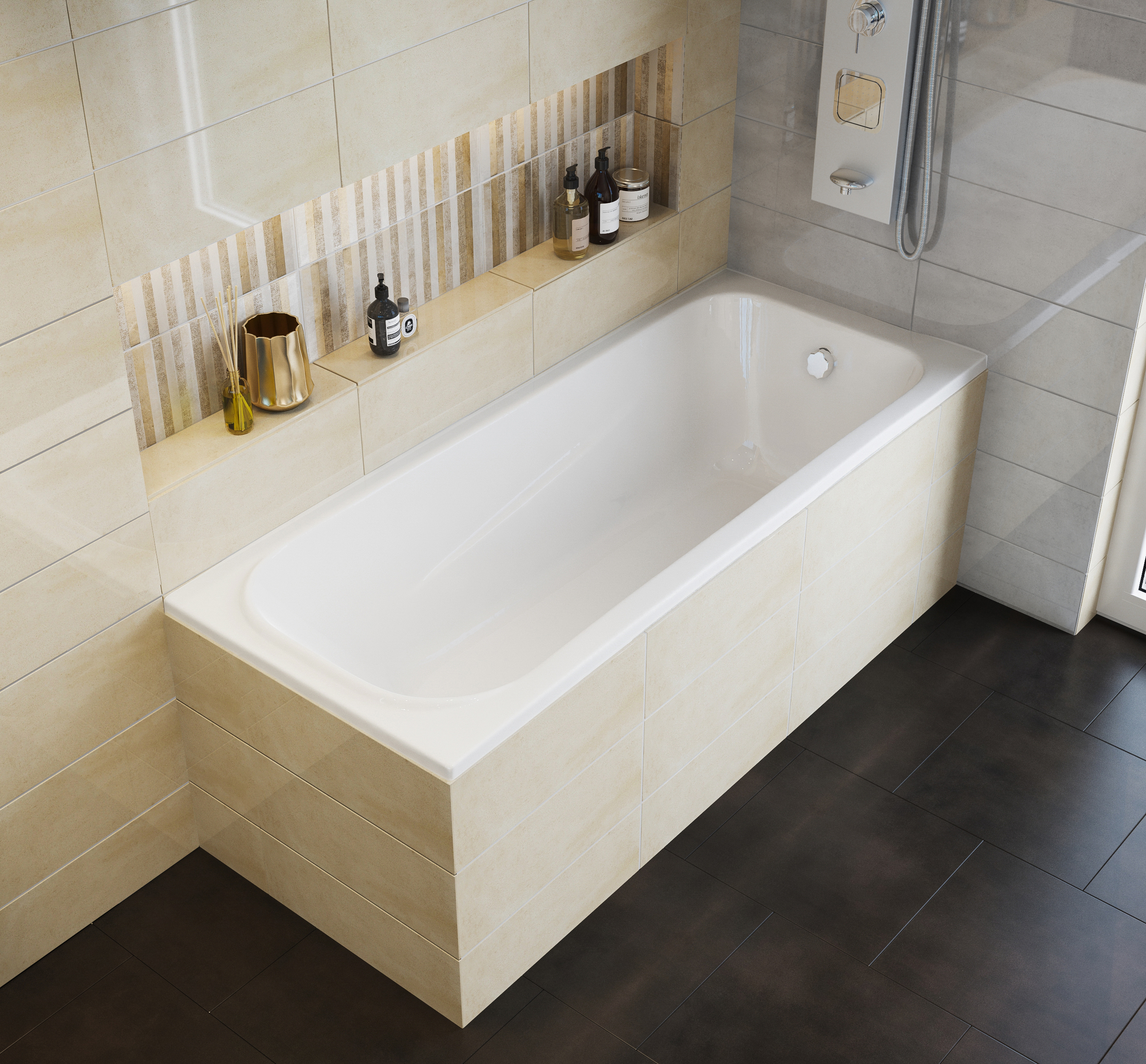 OCEANO Akril egyenes fürdőkád 160x75x40 cm 4,5 mm vastag akril lemezből gyártott, 3 rétegű üvegszál erősítéssel és műgyanta statikai megerősítéssel. Extra merevítés a kád aljában.