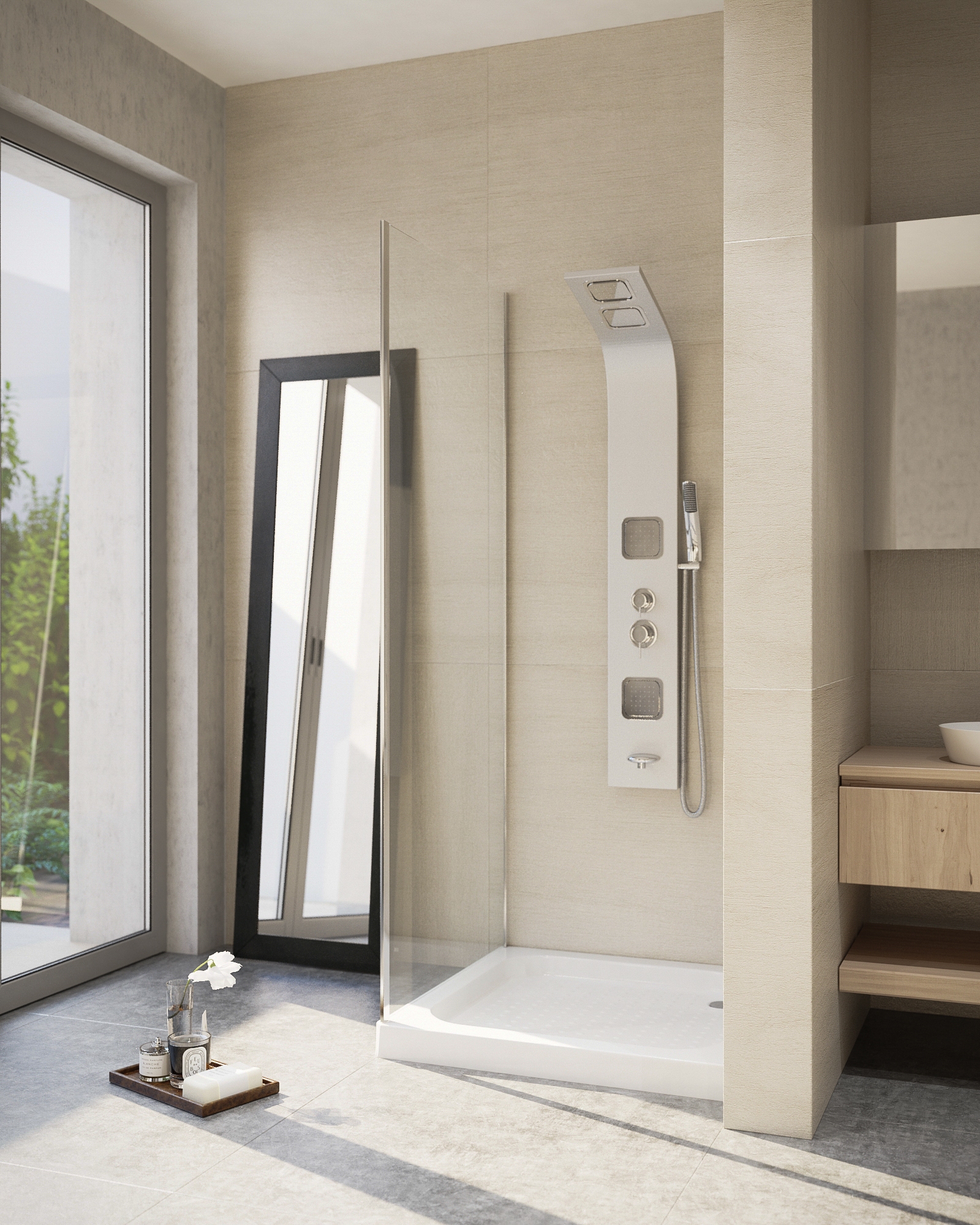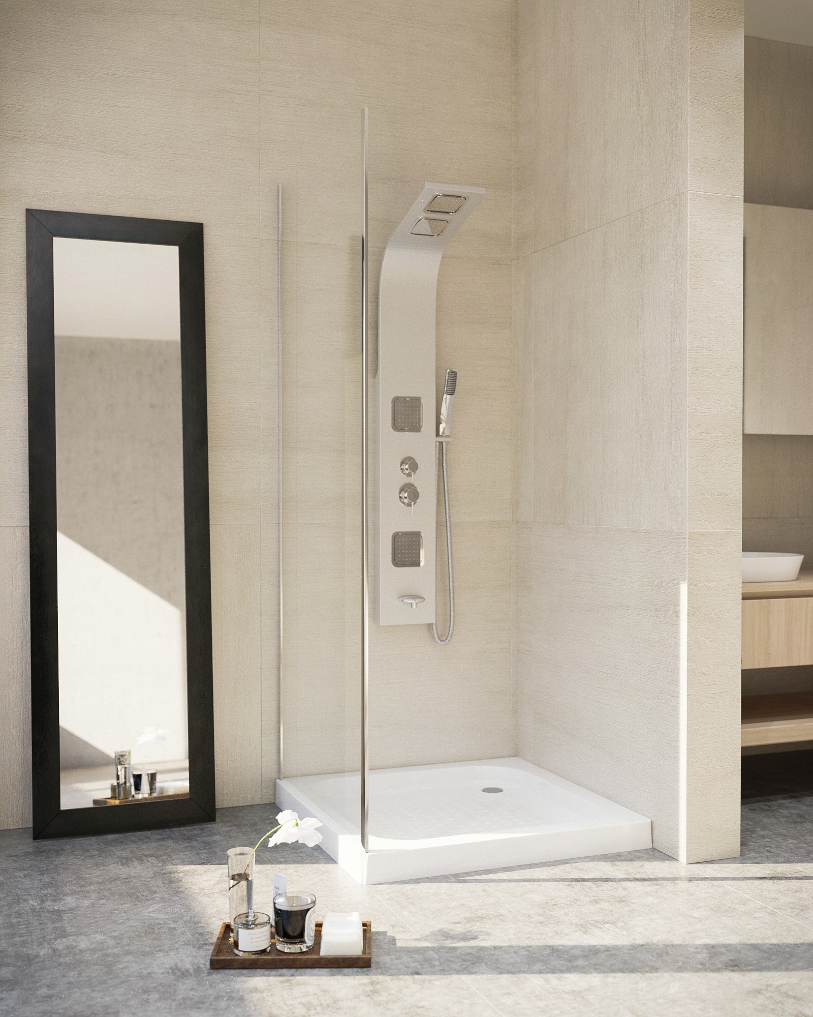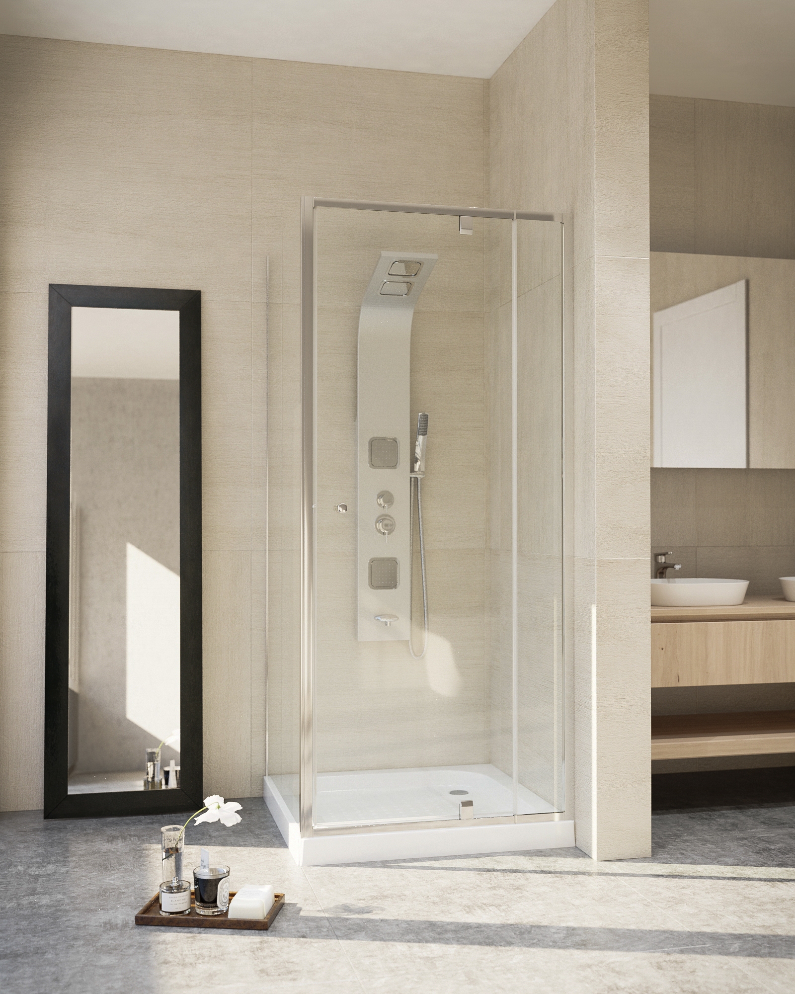 80cm széles, 185cm magas. 5mm vastag víztiszta biztonsági üveg. Polírozott, alumínium profil. Jobbos-balos szerelhetőség. A termék a 22.011-es ajtóval való összeépítésre használható, L vagy U alakban egyaránt. Az oldalfal beépítési mérete: 77-79 x1 85 cm